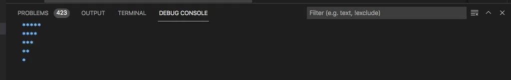 Hết vòng lặp trong sẽ chạy fmt.Print("\n") tức xuống dòng trong các lần hiển thị tiếp theo. - i=2, lần này j bắt đầu từ 2→5 và hiển thị 4 sao: ****