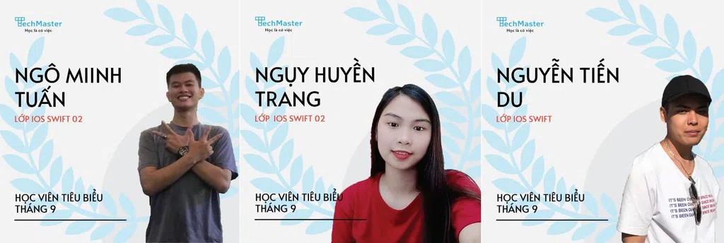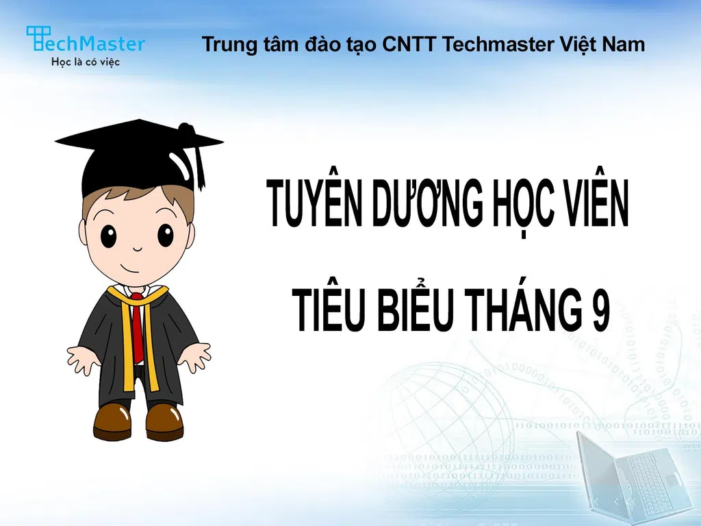 Được sự đồng ý của lãnh đạo Trung tâm, và dựa trên tiêu chí xét duyệt của giảng viên trực tiếp quản lý lớp. Techmaster Việt Nam Tuyên dương học viên tiêu biểu có thành tích học tập tốt trong tháng 9/2021: