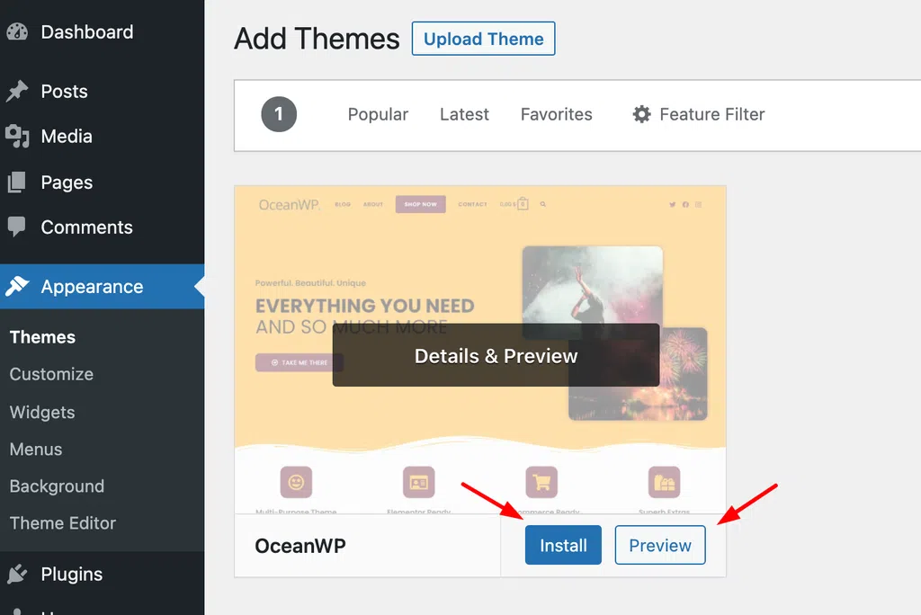 Tìm kiếm và cài đặt theme miễn phí từ thư viện WordPress