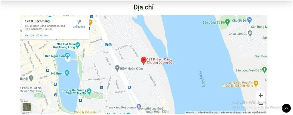 Trong trang có mục bản đồ, tại đây em dùng mã nhúng của bản đồ Google để hiển thị trên trang