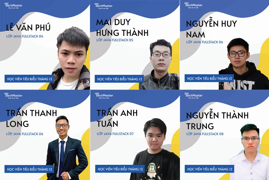 Techmaster xin dành những lời tuyên dương đến tất cả các học viên đang học tập tại trung tâm đã luôn cố gắng hơn mỗi ngày. Và tháng 12 vừa qua, có những tấm gương nổi bật hơn, tiêu biểu đại diện lớp được Techmaster "xướng tên bảng Vàng":