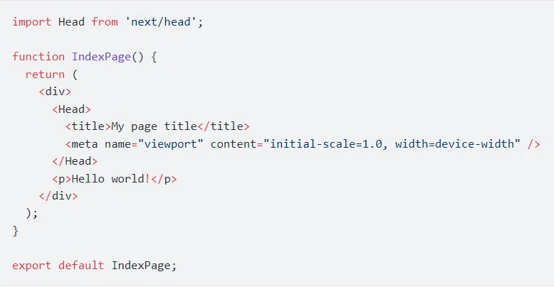 Để hỗ trợ cho việc SEO cũng như chia sẻ thì NextJS cung cấp cho chúng ta một component là next/head. Cách sử dụng như sau: