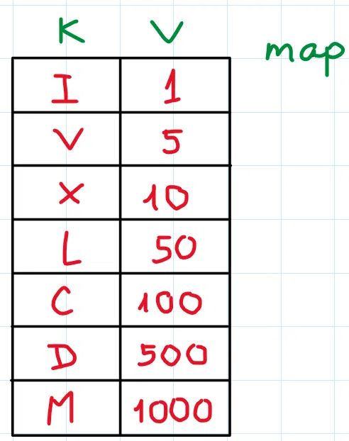 Đầu tiên ta sẽ cần một Hashmap với đối tượng map để chứa những key là chữ số La Mã và value là những giá trị số nguyên tương ứng.