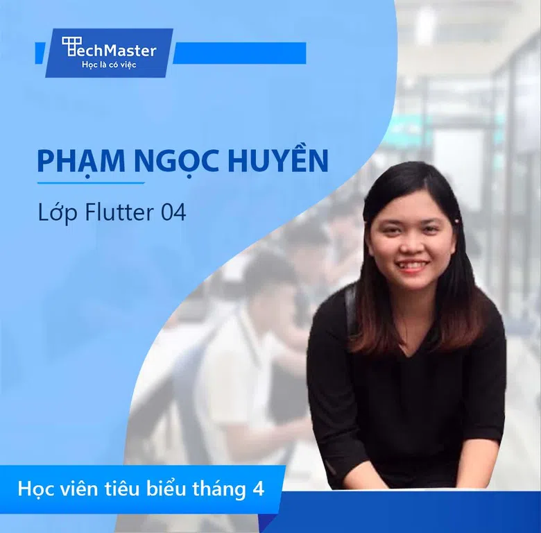 Huyền làm web được 2 năm và muốn chuyển sang làm mobile và lựa chon Flutter. Với nền tảng sẵn có thì Huyền tiếp cận khá nhanh và kỹ năng hơn hẳn những bạn khác trong lớp. Đặc biệt là tuy có kiến thức rồi nhưng Huyền không chủ quan mà luôn tinh thần cầu tiến và luôn hoàn thiện kĩ bài tập về nhà.