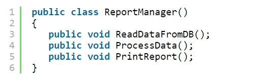 Class này giữ tới 3 trách nhiệm: Đọc dữ liệu từ DB, xử lý dữ liệu, in kết quả. Do đó, chỉ cần ta thay đổi DB, thay đổi cách xuất kết quả, … ta sẽ phải sửa đổi class này. Càng về sau class sẽ càng phình to ra. Theo đúng nguyên lý, ta phải tách class này ra làm 3 class riêng. Tuy số lượng class nhiều hơn những việc sửa chữa sẽ đơn giản hơn, class ngắn hơn nên cũng ít bug hơn.