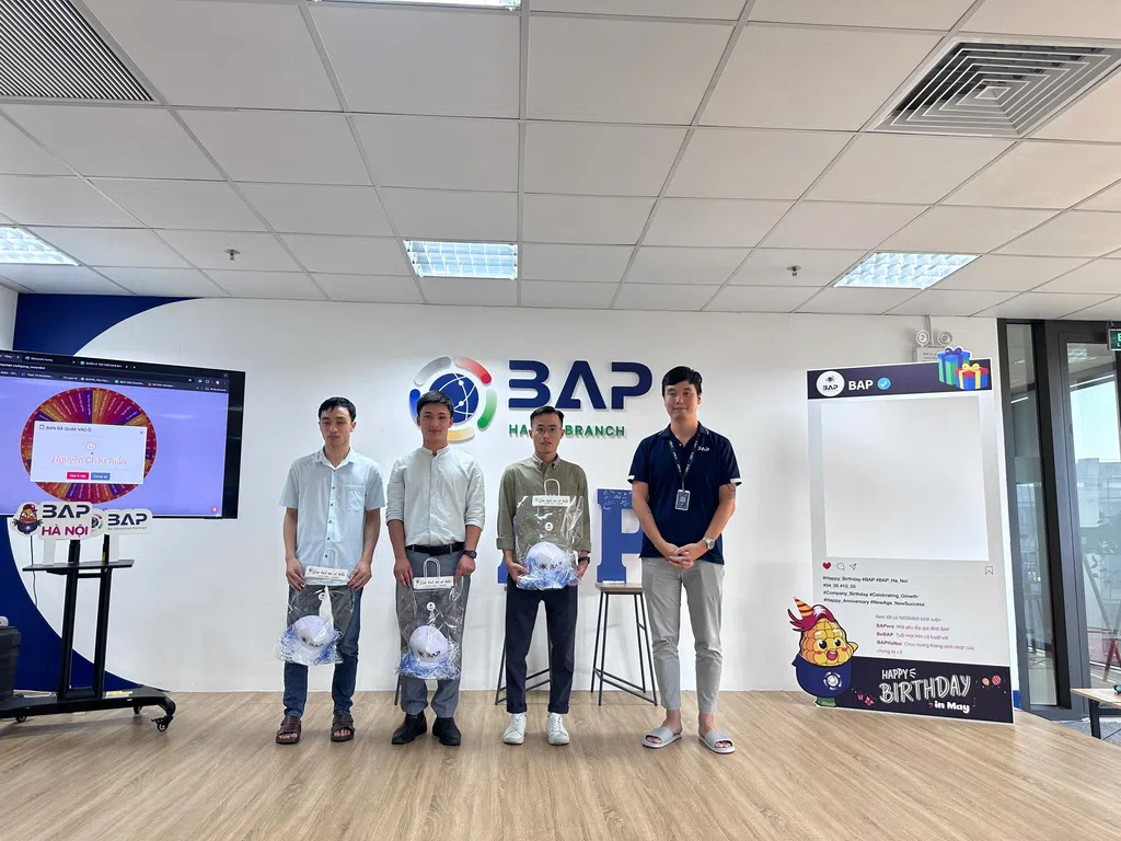 BAP với đội ngũ hơn 500 nhân viên và nhiều chuyên gia có kinh nghiệm trong lĩnh vực như phát triển phần mềm, trí tuệ nhân tạo (AI), blockchain, và công nghệ di động. Tại trụ sở BAP Hà Nội, đoàn tham quan được trải nghiệm không khí làm việc chuyên nghiệp, nơi các quy trình làm việc được thực hiện chặt chẽ với kế hoạch và thời hạn cụ thể. Điều này mang lại sự hiểu biết rõ hơn cho các học viên về cách một doanh nghiệp công nghệ hoạt động trong thực tế.